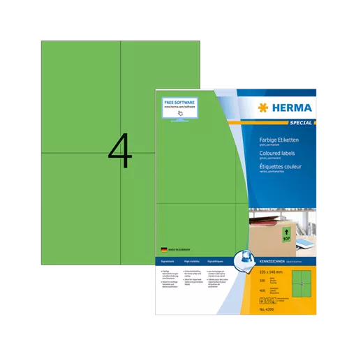 105 mm x 148 mm Papírové Samolepicí etikety A4 Herma Zelená ( 100 hárkov/balenie )