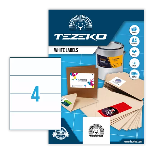 210 mm x 74 mm Papírové Samolepicí etikety A4 Tezeko Bílá ( 100 hárkov/balenie )