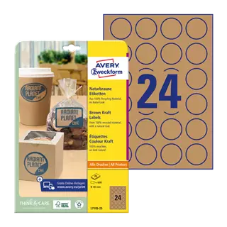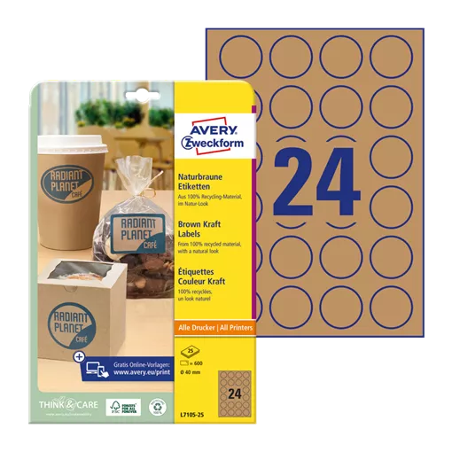 40 mm x 40 mm Papírové Samolepicí etikety A4 Avery Zweckform Hnědá ( 25 hárkov/balenie )