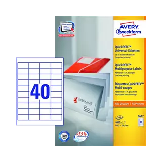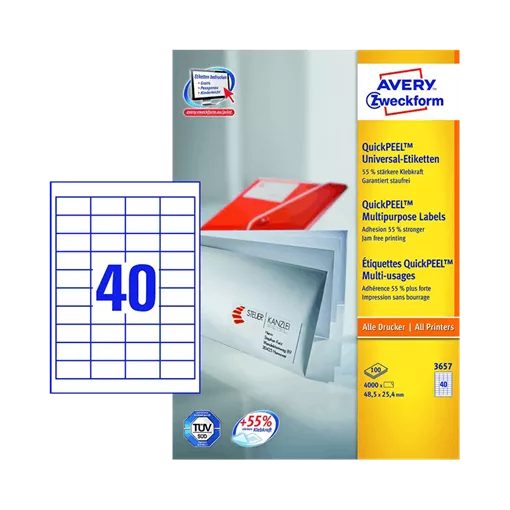 48.5 mm x 25.4 mm Papírové Samolepicí etikety A4 Avery Zweckform Bílá ( 100 hárkov/balenie )
