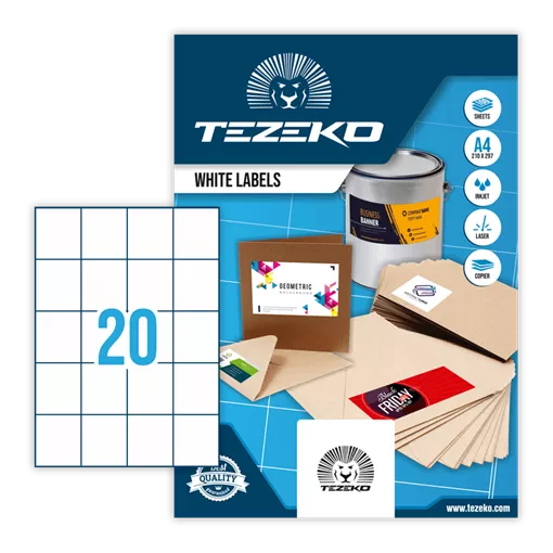 52.5 mm x 59.2 mm Papírové Samolepicí etikety A4 Tezeko Bílá ( 100 hárkov/balenie )