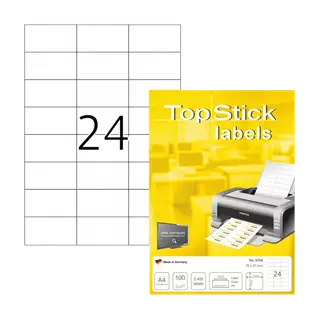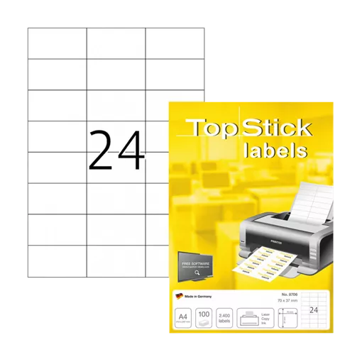 70 mm x 37 mm Papírové Samolepicí etikety A4 Topstick Bílá ( 100 hárkov/balenie )