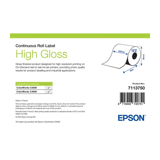 102 mm Papírové Kontinuální spotřební materiál Epson Bílá ( 33 m )