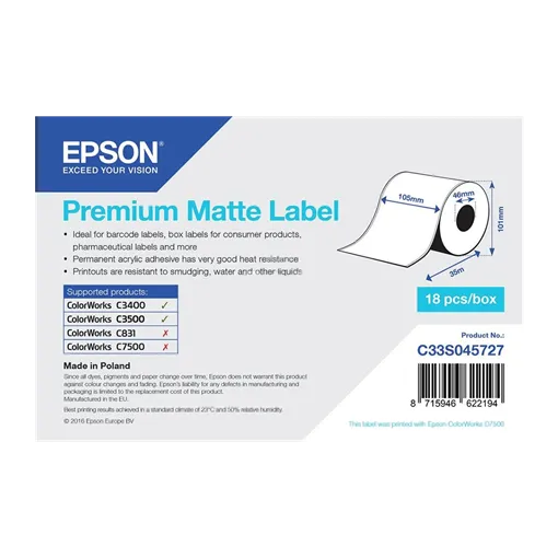 105 mm Papírové Kontinuální spotřební materiál Epson Bílý ( 35 m )