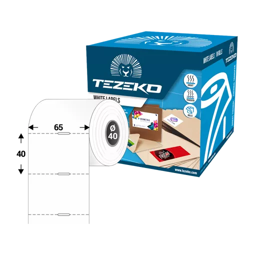Barva: Bílá • Vnější průměr dutinky: 101 mm • Šířka etikety: 65 mm • Délka návinu: 40 m • Termo