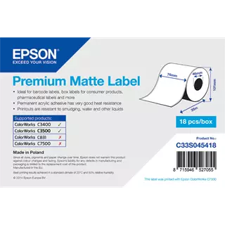 Barva: Bílá • Vnější průměr dutinky: 101 mm • Šířka etikety: 76 mm • Délka návinu: 35 m • Papírové • Pre všeobecné použitie