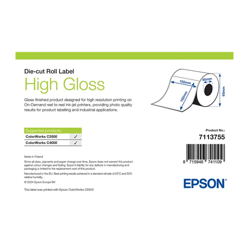 Šírka etikety: 102 mm • Výška etikety: 152 mm • Materiál etikety: Papírové • Vnútorný priemer cievky: 40 mm • Typ lepidla: Standardní • Farba: Bílý