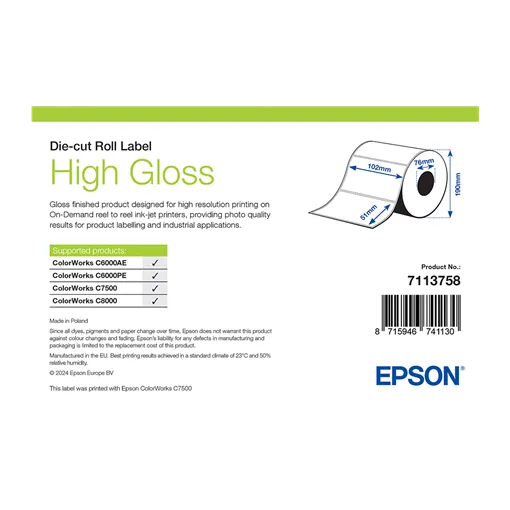 Šírka etikety: 102 mm • Výška etikety: 51 mm • Materiál etikety: Papírové • Vnútorný priemer cievky: 76 mm • Typ lepidla: Standardní • Farba: Bílý