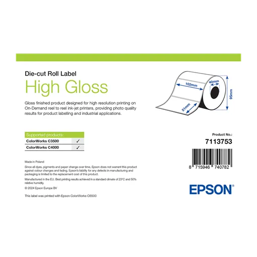 Šírka etikety: 102 mm • Výška etikety: 51 mm • Materiál etikety: Papírové • Vnútorný priemer cievky: 40 mm • Typ lepidla: Standardní • Farba: Bílý