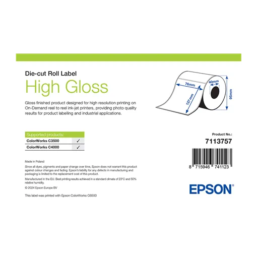 Šírka etikety: 76 mm • Výška etikety: 127 mm • Materiál etikety: Papírové • Vnútorný priemer cievky: 40 mm • Typ lepidla: Standardní • Farba: Bílý