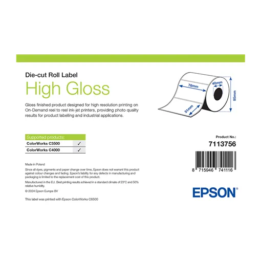 Šírka etikety: 76 mm • Výška etikety: 51 mm • Materiál etikety: Papírové • Vnútorný priemer cievky: 40 mm • Typ lepidla: Standardní • Farba: Bílý