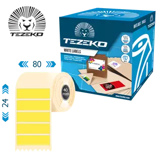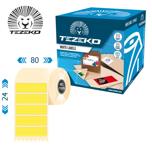 Šírka etikety: 80 mm • Výška etikety: 24 mm • Materiál etikety: Papírové • Vnútorný priemer cievky: 40 mm • Typ lepidla: Standardní • Farba: Žlutá