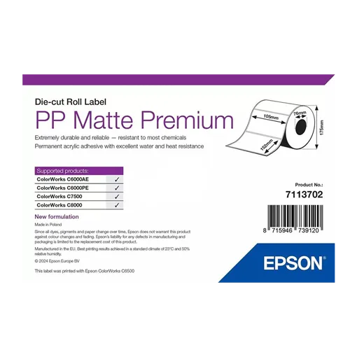 Šírka etikety: 105 mm • Výška etikety: 152 mm • Materiál etikety: Plastové • Vnútorný priemer cievky: 76 mm • Typ lepidla: Standardní • Farba: Bílý