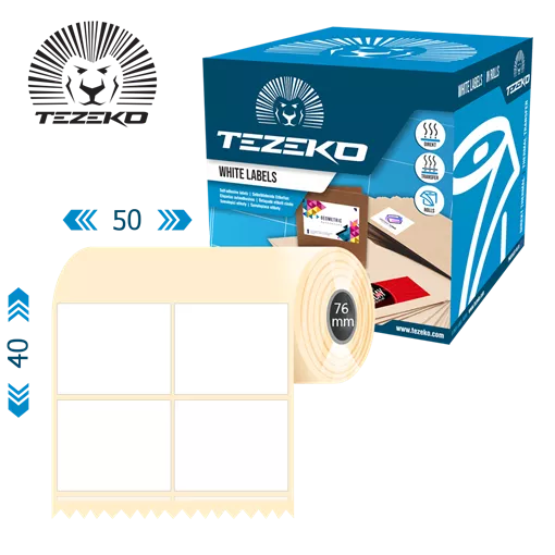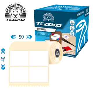 Šířka etikety: 50 mm • Výška etikety: 40 mm • Materiál etikety: Syntetické • Vnitřní průměr dutinky: 76 mm • Typ lepidla: Standardní • Barva: Bílá