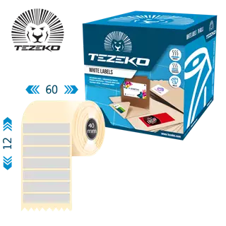 Šířka etikety: 60 mm • Výška etikety: 12 mm • Materiál etikety: Syntetické • Vnitřní průměr dutinky: 40 mm • Typ lepidla: Standardní • Barva: Stříbrná