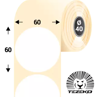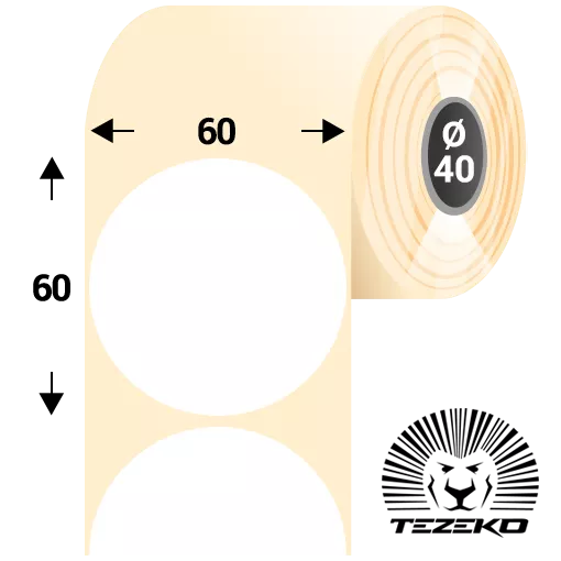 Šířka etikety: 60 mm • Výška etikety: 60 mm • Materiál etikety: Syntetické • Vnitřní průměr dutinky: 40 mm • Typ lepidla: Standardní • Barva: Bílá