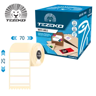 Šířka etikety: 70 mm • Výška etikety: 25 mm • Materiál etikety: Syntetické • Vnitřní průměr dutinky: 76 mm • Typ lepidla: Silné • Barva: Bílá