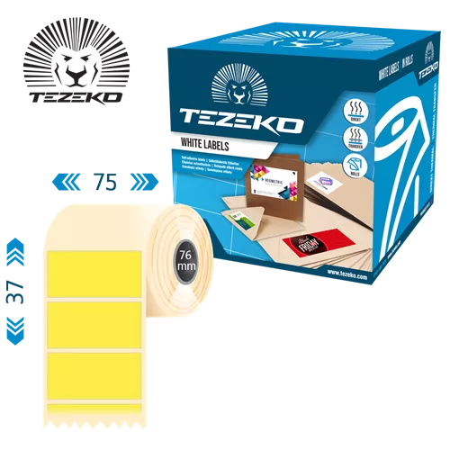 Šířka etikety: 75 mm • Výška etikety: 37 mm • Materiál etikety: Termo • Vnitřní průměr dutinky: 76 mm • Typ lepidla: Standardní • Barva: Žlutá