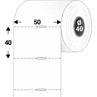 Farba: Bílý • Vonkajší priemer cievky: 100 mm • Šírka etikety: 50 mm • Dĺžka kotúča: 40 m • Plastové