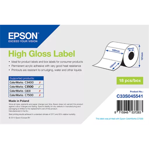Vnútorný priemer cievky: 40 mm • Šírka etikety: 102 mm • Výška etikety: 152 mm • Materiál etikety: Papírové