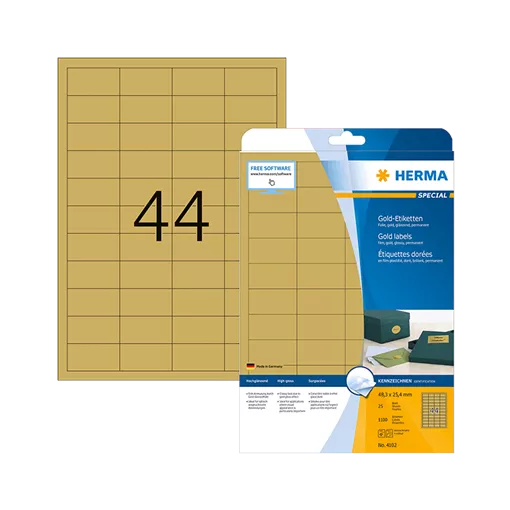 48.3 mm x 25.4 mm Syntetické Samolepicí etikety A4 Herma Zlatá 25 hárkov/balenie
