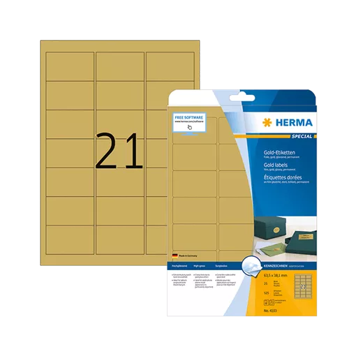 63.5 mm x 38.1 mm Syntetické Samolepicí etikety A4 Herma Zlatá 25 hárkov/balenie